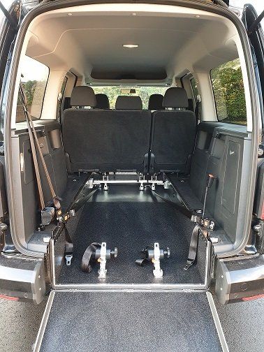 Neben einem VW Kleinbus stellen wir Ihnen für individuelle Rollstuhl-Fahrten einen VW Caddy zur Verfügung, der von der Firma AMF Bruns speziell umgebaut und ausgerüstet wurde.